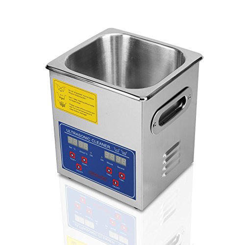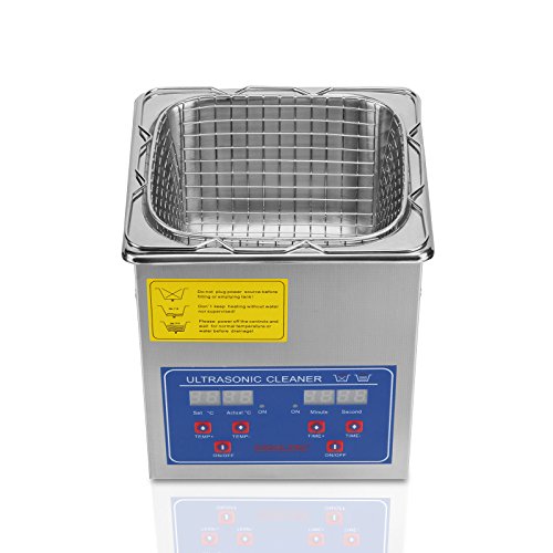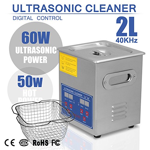 HappyBuy Ultrasonic Cleaner With Heater And Digital Control 2 Liter Capacity The ultrasonic cleaner is a microprocessor-controlled device that uses ultrasonic or high frequency sound waves to clean jewelry and other delicate items.Ultrasonic cleaning is based on the cavitation effect caused by high frequency ultrasonic wave vibration signals in fluid. Microscopic bubbles that expand and rapidly collapse cause cavitation, which creates an effective cleaning action on the surface of object being cleaned. Additionally, the bubbles are small enough to penetrate even microscopic crevices, cleaning them thoroughly and consistently. Product Features This ultrasonic cleaner uses 304 stainless steel, with 2L capacity, CE, FCC and RoHS Approved.High quality durable stainless steel construction, High efficiency clean for teeny blot particles. Perfect for cleaning the longhole, finedraw and shelter of piece part or workpiece, no need to touch cleaning fluid by your hands The ultrasonic cleaner has 50W heating power and 60W ultrasonic power.This machine generates 40kHz ultrasonic wave, clean thoroughly without any harm to your valuables LED digital timer control time and temperature precisely, 1 to 30 minutes, 0 to 80 degrees Celsius Easy to operate, uses tap water, great for jewelry, eyeglass, watches, dental, guns etc, with basket Specifications: Tank capacity: 2L Tank size(inches): Tank Size: 6 "×5 1/4 "×4 " (L x W x H) Ultrasonic Cleaner Size: 6 3/4 "×6 1/4 "×7" (L x W x H) weight: 6.415 LBS Material: Stainless steel with diamond-shaped figures Time setting: 1-30min adjustable Temperature setting: 0-80 degrees celsius adjustable Frequency: 40KHz Ultrasonic Power: 60W Heating Power: 50W Maximum power: 110 watts Contents 1 x Ultrasonic Cleaner 1 x Cleaning Basket 1 x Instruction Manual 0 |