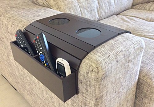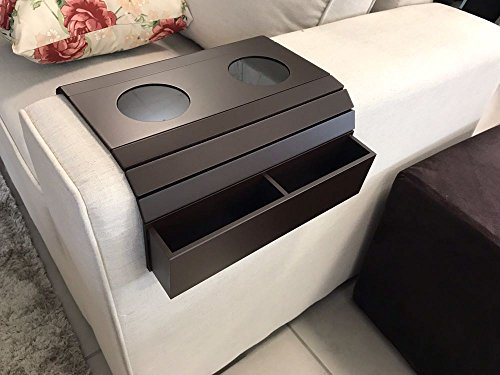2 Drink Holders plus 3 Pocket Organizers. You can use it to organize your favorite TV accesories. Easy access to your drinks, snacks, phones, remote control, glasses and everything you need to have handy without having to get up!