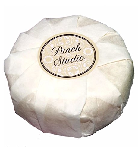 - Paper pleated wrapped 3.5 ounce soap bar with 'Punch Studio' sticker
