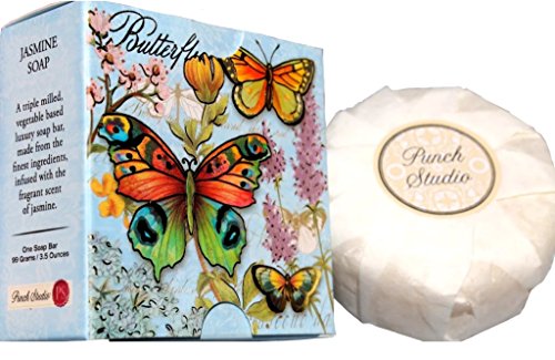 Punch Studio Jasmine 3.5 oz Luxurious Soap Bar packaged in a Gold Foil Botanic Butterfly Gift Box 95741