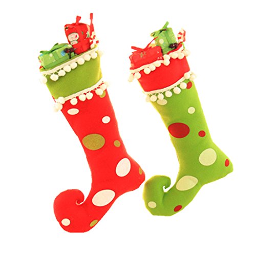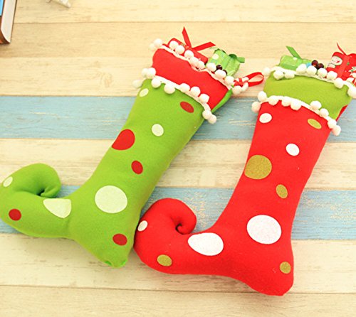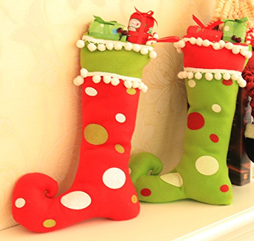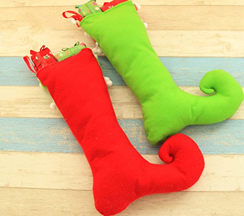 Zerowin Cute Elf Boots Shoes Socks Christmas Holiday Stocking Candy Gift Bags Hanging Ornaments for Santa Festival Party Tree Decoration (Red&Green)