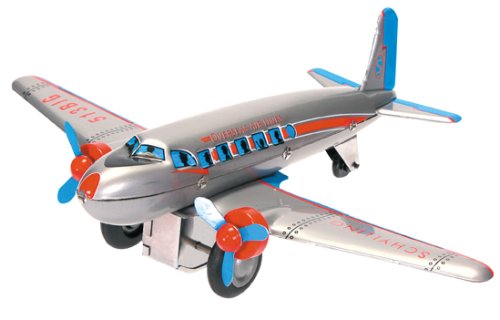 DC-3 Airplane, Friction Powered Tin Plane w/ Spinning Propeller by Schylling