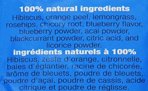 -. Feature : Box of 100 tea bags, great bulk size for foodservice or restaurants / A bright blend of blueberry, acai, hibiscus and blackcurrant flavors make this tea refreshing and thirst-quenching / Enjoy this tart tea hot or iced, or add sugar for a sweeter taste / Kof-K Kosher certified, caffeine free, ships in Frustration Free Packaging / Blended in the USA, with natural ingredients from around the world