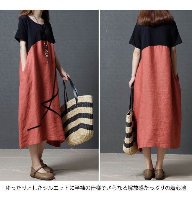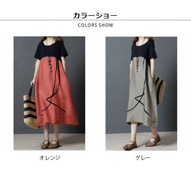 半袖ワンピース 体型カバー レディース ロングワンピ 丸襟 ゆったり 半袖 ワンピース ロング丈 カジュアル 大きいサイズ マキシ丈ワンピース 夏物レディース用のワンピースが登場吸湿性・通気性に優れた綿麻混紡素材を厳選、夏に爽やかな肌触りをもたらすゆったりとしたシルエットに半袖の仕様でさらなる解放感たっぷりの着心地色の切り替え目はハイウエストの視覚効果を作り出し、スタイルをより良く見えさせる大きめのサイズ感にストレートのカッティングで体型カバー効果抜群カジュアル感とアーティスティックな雰囲気が溢れる一枚カラー:オレンジ グレー素材 綿麻混紡サイズ(cm) M L XL 2XLM 総丈102 バスト98 肩幅38L 総丈103 バスト102 肩幅39XL 総丈104 バスト106 肩幅402XL 総丈105 バスト110 肩幅41ご注意:※サイズは平置きサイズです。素人採寸ですので、若干の誤差がございます、ご了承ください。