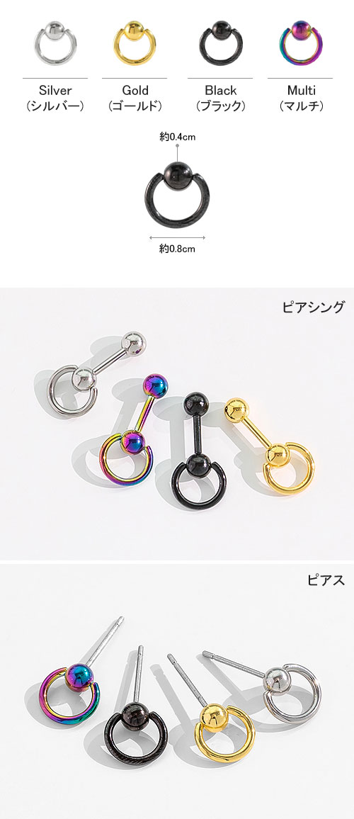 ゲージ:ピアシング 16G(1.2mm)、ピアス 20G(0.8mm)