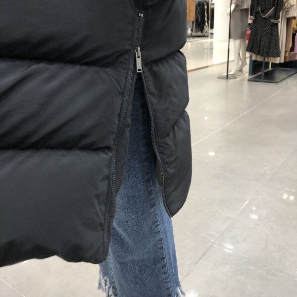 다운롱패딩입니다.후드는 탈착이가능한 폭스퍼후드에요^^밑단 지퍼트임이있어 일반롱패딩보다 훨씬 활동하기 편하고 따뜻하게 입으실수있습니다^^