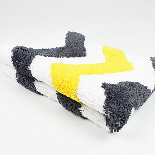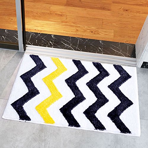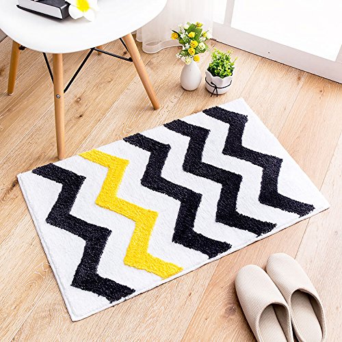 TideTex Simple Chevron V Shaped Printed Area Rug Super Soft Plush Wave Design Batnroom Non-slip Foot Pad Front Door Mat Carpet Water Absorption Durable Rug (1'6x2'6, Yellow+Black)