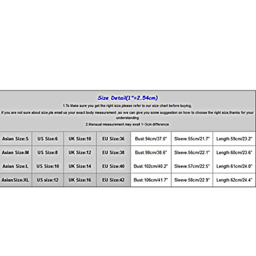 Asian Size:L US Size:8 Bust:102cm/40.2" Sleeve:56cm/22.1" Length:60cm/23.6"