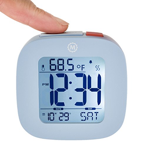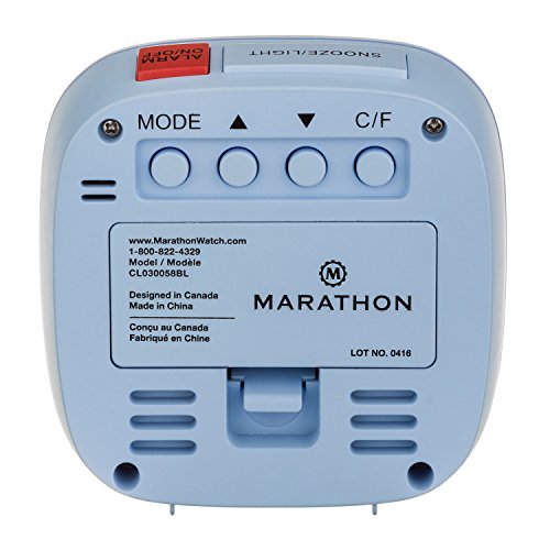 Studio : MARATHON Publisher : MARATHON Binding : Kitchen Product Description This Lightweight and Compact Alarm Clock with Temperature and Date from Marathon is the perfect functional accompaniment for your desk, night stand, counter or coffee table that will compliment the look of any room. Featuring a calming blue backlight, a progressive interval alarm which makes waking up a breeze, and the perfect compact size at 3.1" x 1" x 3" for bedside, travel or children's use. Perfect for dorms rooms. Using 2 AAA batteries, the Marathon Compact Alarm Clock with Temperature and Date is a convenient and easy to use clock that is sure to satisfy. Multi languages include, English, French, Danish, Dutch, German, Italian Spanish. Available in Snow White, Ice Blue, Light Pink, Midnight Black Graphite Grey. A great addition to any living space. 0