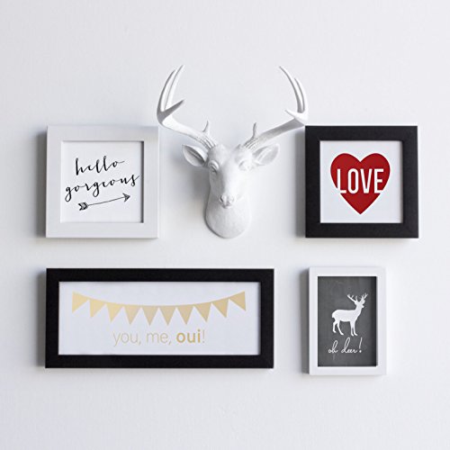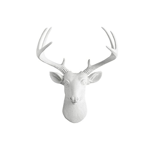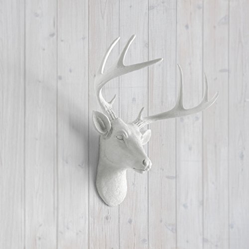 Mini Deer by Wall Charmers | White Faux Head Mount Bust Fake Animal Resin Taxidermy Sculpture Stag Buck Antler Fauxidermy Mounted Replica Decor Art