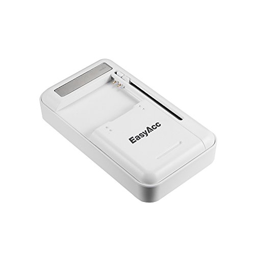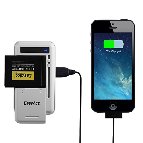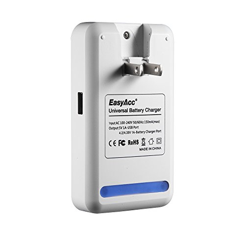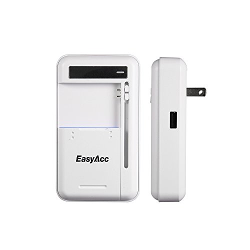 -. Binding : Wireless Phone Accessory -. Brand : EasyAcc -. Color : White -. EAN : 0799695148356 -. Feature : Ultra-compatible: Compatible with over 90% of mobile phone batteries(NOT compatible with camera battery).Note:Samsung Galaxy S5 batteries can only be charged to around 90% of their full capacity by this charger. / Fast charging: The battery holder can charge at a speed of up to 5V 1A (most universal chargers charge at a speed below 500mA). / Smart charger: Automatically recognizes an inserted battery's voltage and polarity. An LED indicator keeps you informed about the charging status of your battery. / Dual output: The USB charging port and battery holder can be used simultaneously. Safe charging: Multiple security protections provide both constant voltage and constant current charging. / Lifetime after-sales service: Comes with a 12-month warranty plus lifetime technical support. -. Label : EasyAcc -. Manufacturer : EasyAcc -. PackageQuantity : 1 -. ProductGroup : Wireless -. ProductTypeName : WIRELESS_ACCESSORY -. Publisher : EasyAcc -. Studio : EasyAcc -. Title : EasyAcc® Multi-Purpose Universal USB Travel Wall Charger Cell Phone Battery Charger for IPhone Samsung HTC and Many More SmartPhones (NOT Compatible with Camera Battery)-White -. UPC : 799695148356