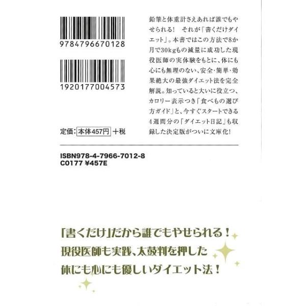 【商品基本情報】 商品名称:お医者さんが成功した!書くだけダイエット 決定版-宝島SUGOI文庫 著者/出版社:大橋 健/大橋 健 初版発行日:2009/03/19 サイズ:文庫判 ページ数:157 ISBN/JAN:9784796670128/4528189411388