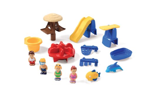 - Feature : Send the little people down the slide or off the diving board / Spin around the water wheel carousel / Includes 14 piece accessory set / Pump the guyser to watch the water flow / Durable quality for multi-child play