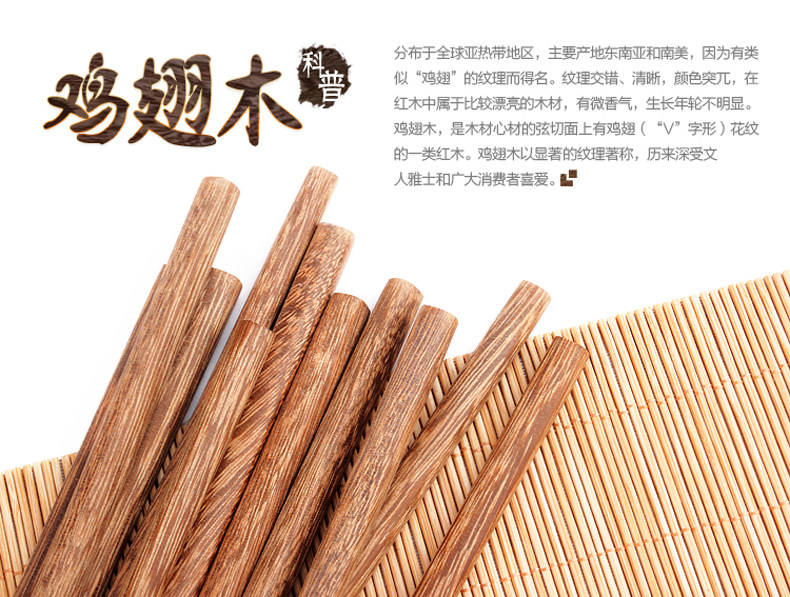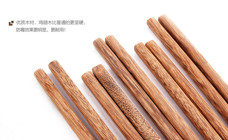 创意家用鸡翅木筷子套装尖头实木木质酒店无油漆