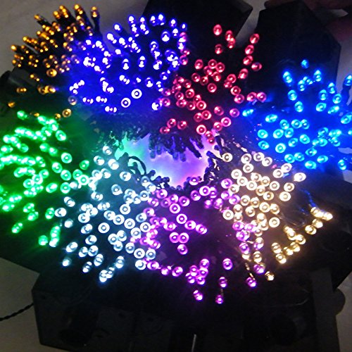 - 2.Solar Powered String lights: 100 bright colorful LED on the 39ft light strand (6.5ft lead cable included), powered by built-in 1800mA NI-MH batteries, low voltage power, non plug-in