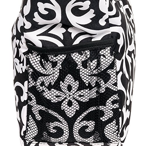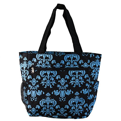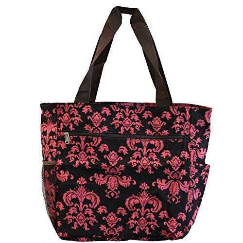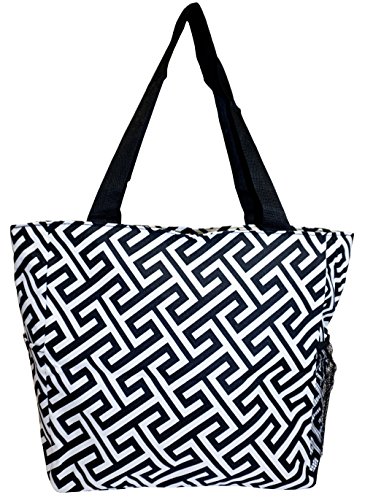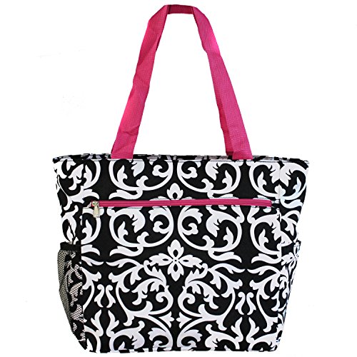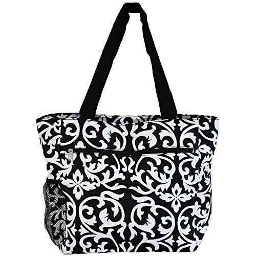This Black & White Damask Beach Tote Bag from Silverhooks gives you the most bang for your buck. A durable lined interior and polyester exterior allow you to easily spot clean most spills or markings while providing you with a tough bag that won't easily tear or puncture. Great for a day at the beach, out shopping, or just going out with friends, this bag won't get old and you'll never run out of activities that this bag can be used for. A large zippered main compartment, 2 exterior slip pockets, and a back zippered pocket can store your towels, groceries, cell phone, keys, wallet, and much more. Featuring a unique pattern and color combination, this reusable shopping bag is only available from Silverhooks. Measures 18.5" x 13.75" x 6.5".