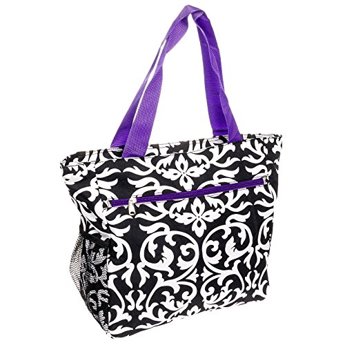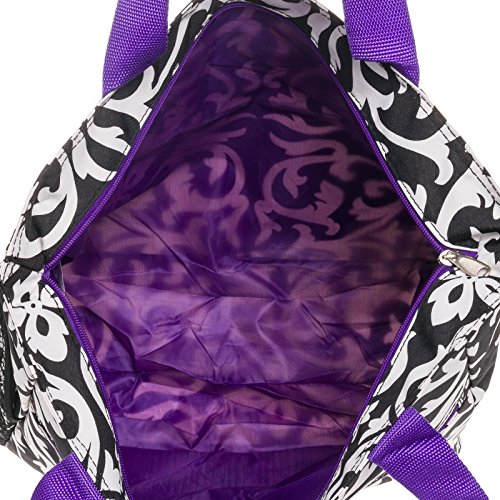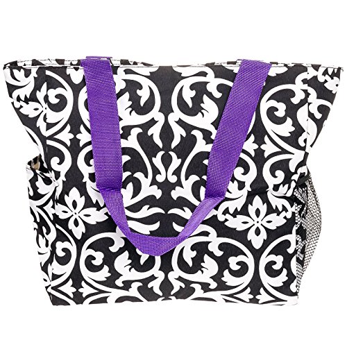 Silverhooks Womens Damask Beach Tote Bag w/ Purple Trim (Black & White)