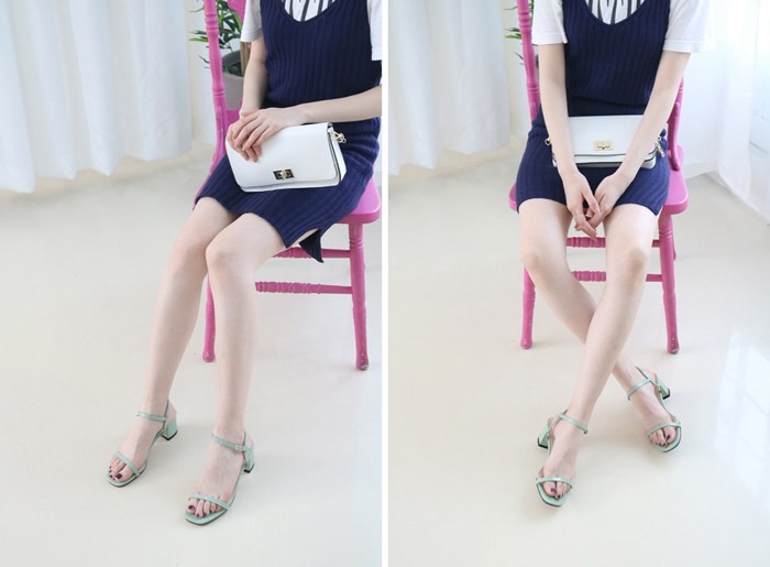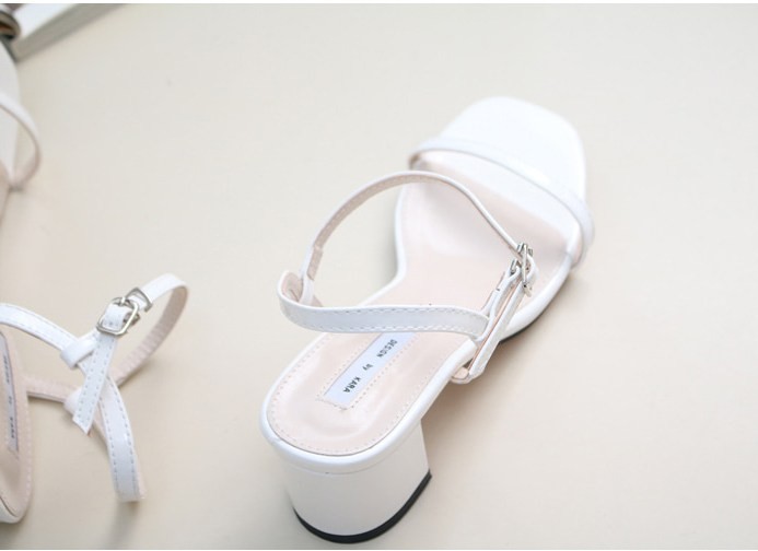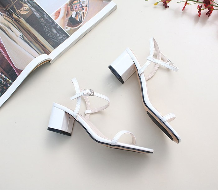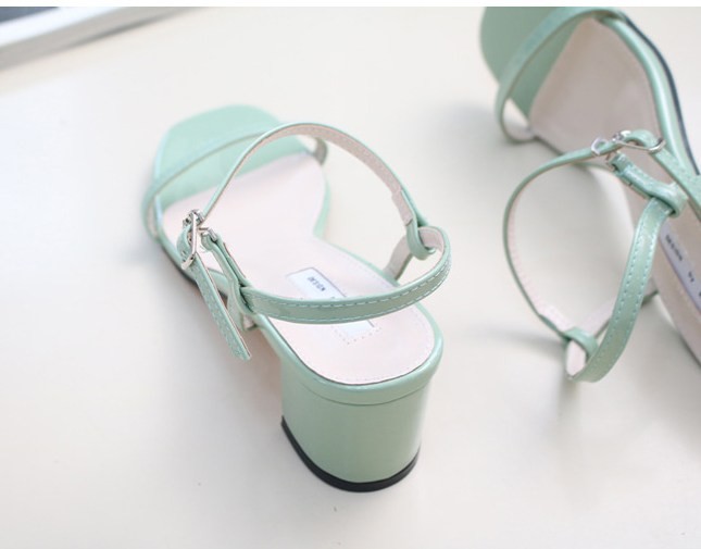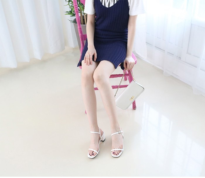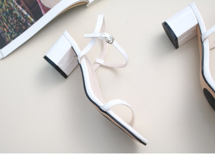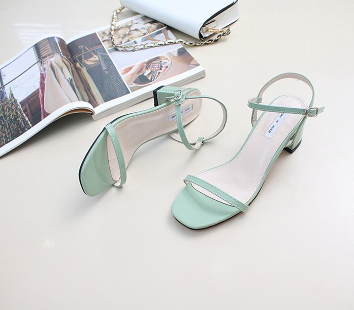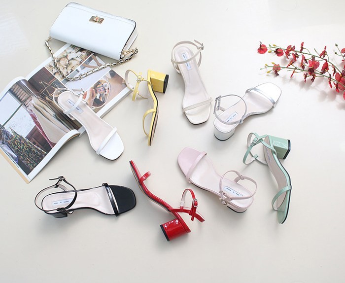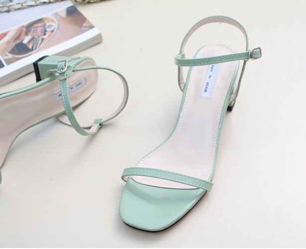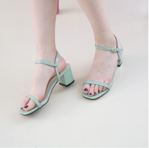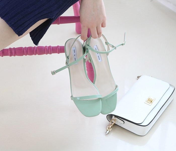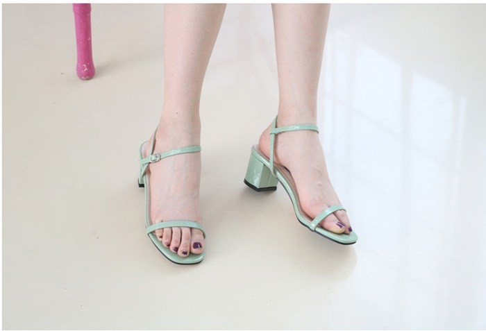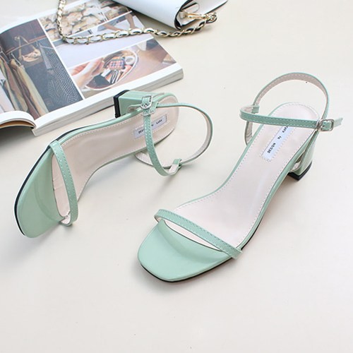 商品名:サンダル レディース 太ヒール チャンキーヒール エナメル調 アンクルストラップ 2018 夏 ファッション 靴 婦人靴