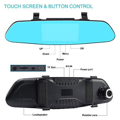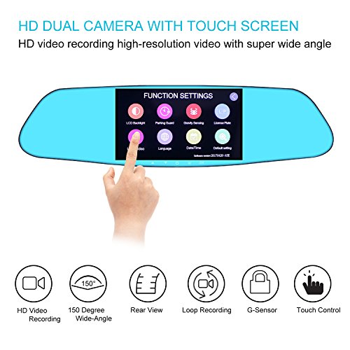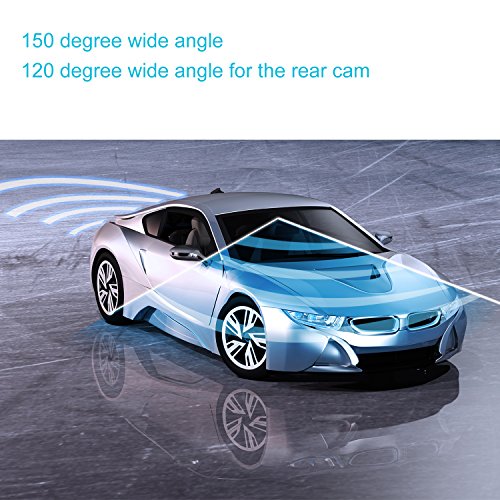 REARVIEW MIRROR CAR CAMERA: Excellent 1080P front mirror camera with 150°wide angle lens+ weatherproof rear camera. Safe recording with full coverage for the road ahead as well as oncoming traffic from behind.