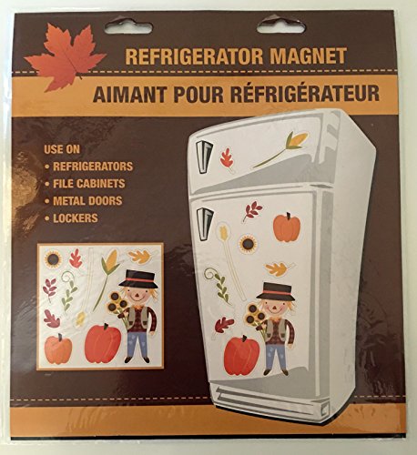 Decorative Refrigerator Magnets Large, Scarecrow Thanksgiving, Autumn Leaves 11 Magnets