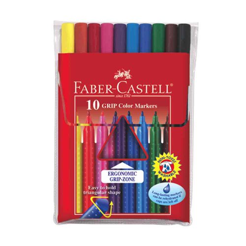 Studio : Faber-Castell Publisher : Faber-Castell Binding : Misc. Product Description CREATIVITY FOR KIDS- Faber Castell Grip Washable Markers. These are long lasting markers that can be rehydrated if caps are left off. This feature an ergonomic grip and an easy to hold triangular shape. This package contains ten markers. Conforms to ASTM D 4236. WARNING: Not suitable for children under 3 years. Imported. 0