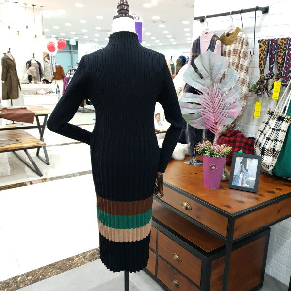 3단배색 주름니트 원피스예요.깔끔한 니트 원피스에 배색이 세련되게 들어가있어 밋밋하지 않고 멋스럽게 입기 좋아요.세로 골지가 날씬해 보이며 신축성이 좋아 편하게 입기 좋아요