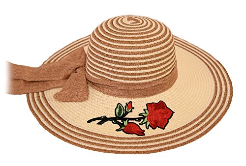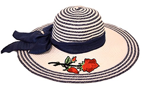 Product DescriptionLadies straw sun hat with an embroidered rose0