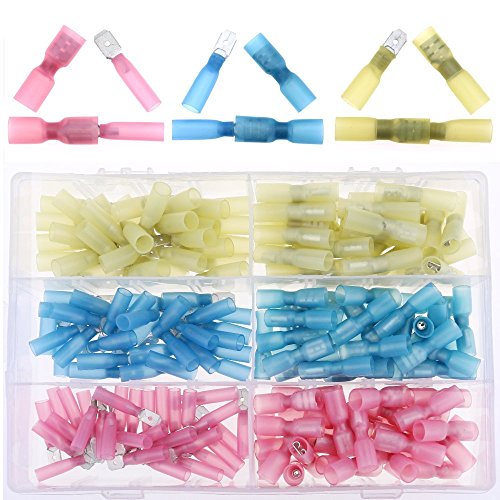 Hilitchi 160Pcs Waterproof Heat Shrink Fully-Insulated Female Male Spade Terminals Electrical Wire Crimp Connectors Kit
