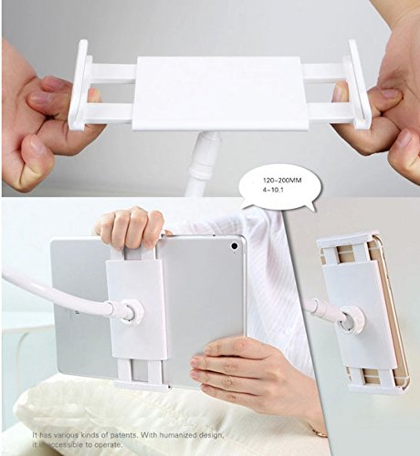 Fit for 4-10.1 inches tablets and phones, like ipad, iphone7 Plus, 6, 6 plus,5s/ 5SE. Holder weight 650g maximum.