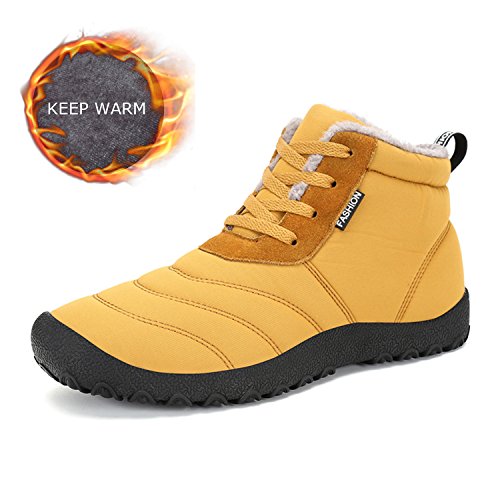 -. Feature : STYLISH DESIGN: Stylish winter boots features waterproof fabrics upper,classic shape design, high top and lace-up style, it's the combination of fashion and classics / KEEPING WARM: Fully fur lined from top to insole plus the thicken waterproof fabrics uppers, cover your feet in warmth all day, especially in winter / ANTI-SLIP: Durable and rigid rubber outsole with anti-slip gears, make you walk steadily no matter you are at home or go out, perfect for indoor and outdoor use / CUSHIONING & FLEXIBLE: Lightweight and flexible EVA midsole with excellent cushioning performance, provides great support for your feet, helps to reduce shock and soothe each heavy step / MULTIFUNCTIONAL: You'll like this classic-designing winter shoes when you are shopping, climbing, walking, working, driving or doing some other things