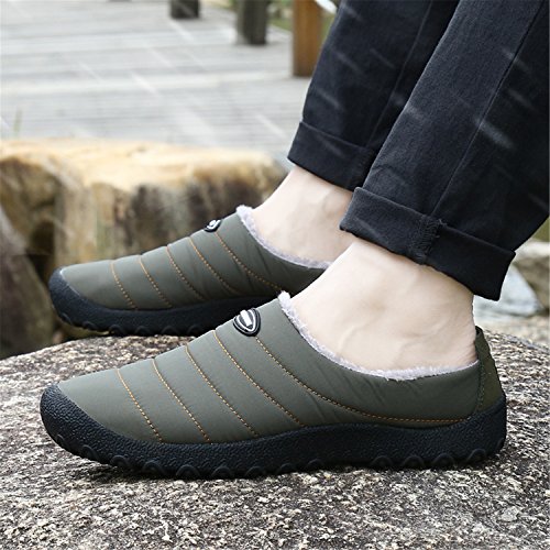 -. Title : L-RUN Mens Indoor Outdoor Slippers Warm Fur Lined Winter House Shoes Slip On