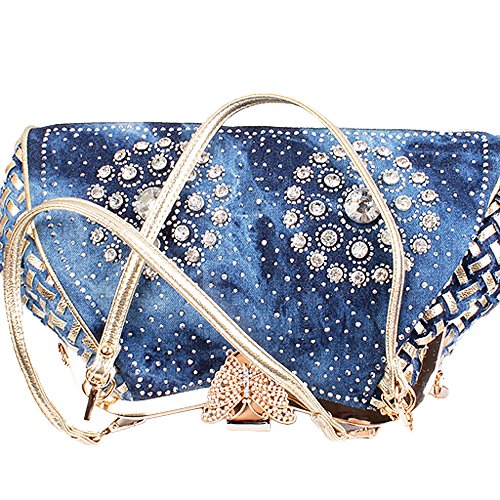 -. Brand : Coofit -. Color : Denim 1 -. Department : womens -. EAN : 5020368788162 -. Feature : Material: high quality denim. / Size: 14.1"(L)*5.1"(W)*9"(H); Because of difference of measuring way, small size error is allowed. / Craft: Diamante; Crystal studed; Woven / PLEASE NOTE: "Coofit" is the registered trademark in United States and Europe. The US Registration Number: 86290026. We only authorized to seller "Totops", In order to receive the original quality products, please only purchase from "Totops" -. ProductGroup : Shoes -. ProductTypeName : HANDBAG -. Size : Large -. Title : Coofit® Women's Denim Blue Knitted Top Handle Handbags with Shiny Rhinestone