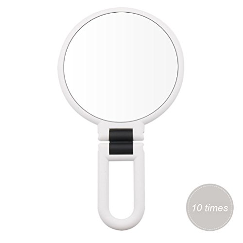 BESTOMZ Magnifying Round Mirror Free Standing Table-10x Top Makeup Mirror For Shaving Detailed Makeup Magnifying Mirror For Bathroom (White)
