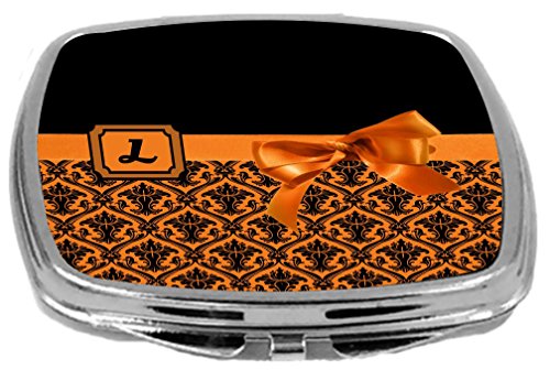 Rikki Knight Letter-L Monogram Damask Bow Design Compact Mirror, Orange, 2 Ounce