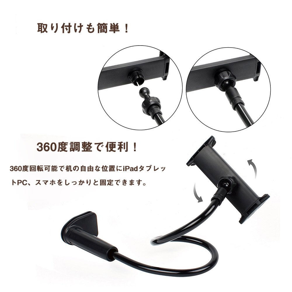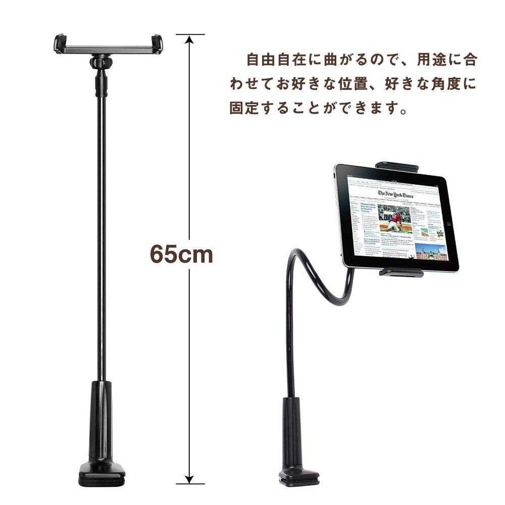 ipad stand is a flexible arm that can be moved up and down, left and right,