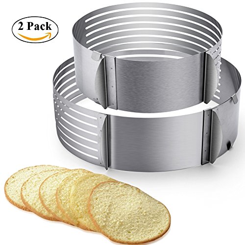 2pcs Adjustable Layer Cake Slicer 9"-12" and 6"-8" Stainless Steel Multi Layered Ring Circular Cutter Baking Tool Kit Mousse Mould for Women Wedding Christmas Mothers Day Gift
