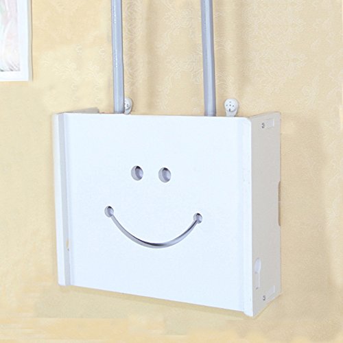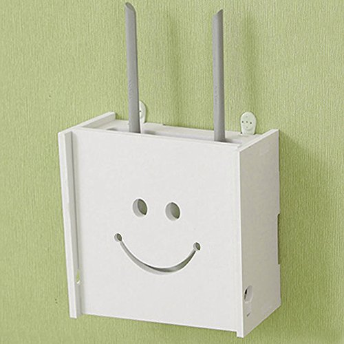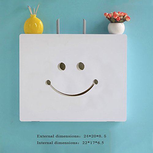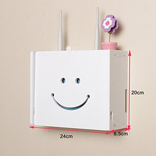 yazi WiFi Router Cable Power Plug Wire Storage Boxes Wall Mount Floating Shelf Storage Rack Smiling Face