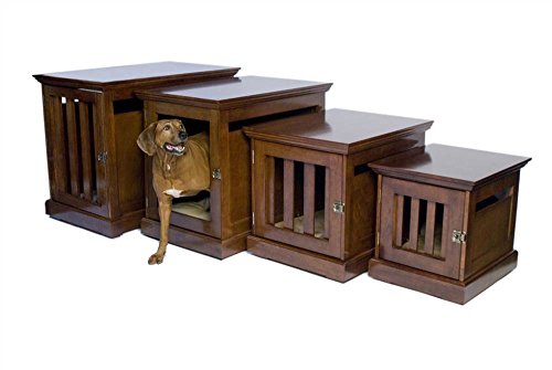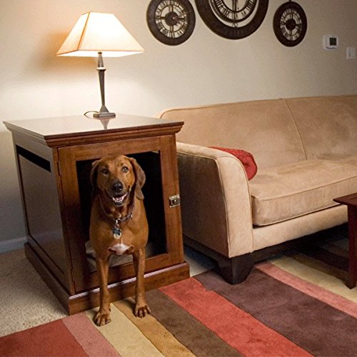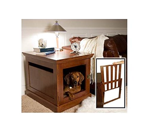 -. Feature : Durable, wooden dog house to add warmth and beauty to your home; Provides comfort and ventilation for your companion; A dog crate you will truly be proud to have in your home / Appeals to dogs' natural instincts for enclosed space; Antique brass hardware; Expert ventilation; Removable and lockable interior door panel / Constructed of solid tropical wood. Medium density fiberboard, known as MDF, is used in some places to enhance strength and stability / Multiple coats of finish and sealer protect wood; Smooth finished interior ;All wood is kiln-dried, a process that removes moisture from wood and ensures that it will not split, warp, crack or mildew / Clean with a soft, damp cloth; Remove smudges with a cloth that has been slightly dampened with a solution of mild soap and water; dry thoroughly;Avoid the use of harsh chemicals and abrasive cleaners