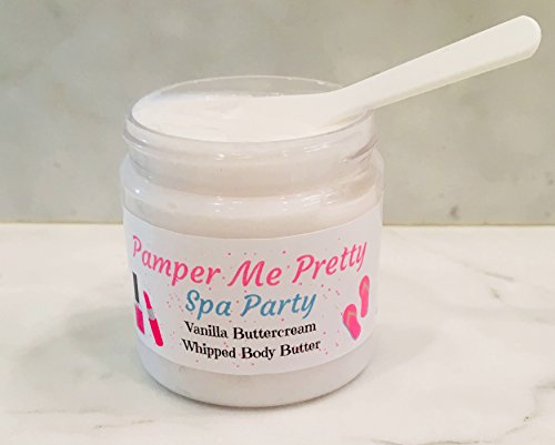 GIRLS SPA PARTY SUPPLIES but good enough for moms to use. This vanilla buttercream scented whipped butter is luxurious and moisturizing and girls will love the custom design making their party extra special.