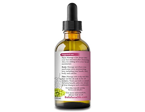 NEW Grape Seed Oil. 4oz. Cold-pressed. Unrefined. Organic. 100% Pure. Rich in vitamins. Hexane-free. Rejuvenates Skin. Softens Hair. Natural...