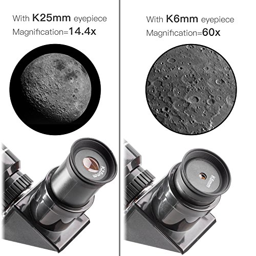 -. Feature : 【Clear Views】Fully coated optical glass with high transmission coatings creates stunning images with increased brightness and clarity. This telescope also provides correctly-oriented images, making it an ideal choice for both terrestrial and celestial viewing. / 【Quick and Easy No-Tool Setup】This telescope is suitable for entry-level amateur astronomers and teens kids to explore land & sky. As long as you have enough imagination, there will be more interesting and practical usefulness! / 【High Quality Optics and Aluminum Tabletop Tripod】Refracter telescope / focal length:360mm(f/5.1); Aperture:70mm; Barlow Lens: 3X; Eyepiece: K6mm:60X ,K25mm:14.4X; Finderscope: 5×24 with mounting bracket; Prism: 90°erect image prism diagonal. / 【Come with a 20L Lightweight Hiking Daypack】This travel scope features a compact and portable design perfect for the on-the-go sky gazer. The telescope and tripod can fit inside the backpack for easy traveling and storage. / 【Satisfaction Warranty】 Reliable and friendly customer service within a 24 hour time frame, 30-Day money back guarantee, 12-month Warranty and Lifetime Support Guarantee.