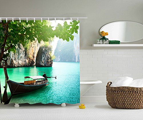 3D Polyester Shower Curtain,Mold and Mildew Resistant/Waterproof Shower Curtain for Bathroom 72 X 72 Inch By Royal Textile (Boat)