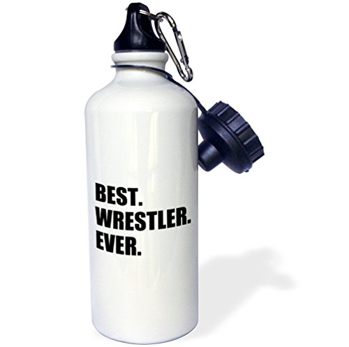 3dRose wb_185022_1 Best Wrestler Ever, Fun Wrestling Sport Gift, Black and White Text Sports Water Bottle, 21 oz, White