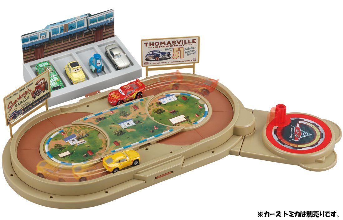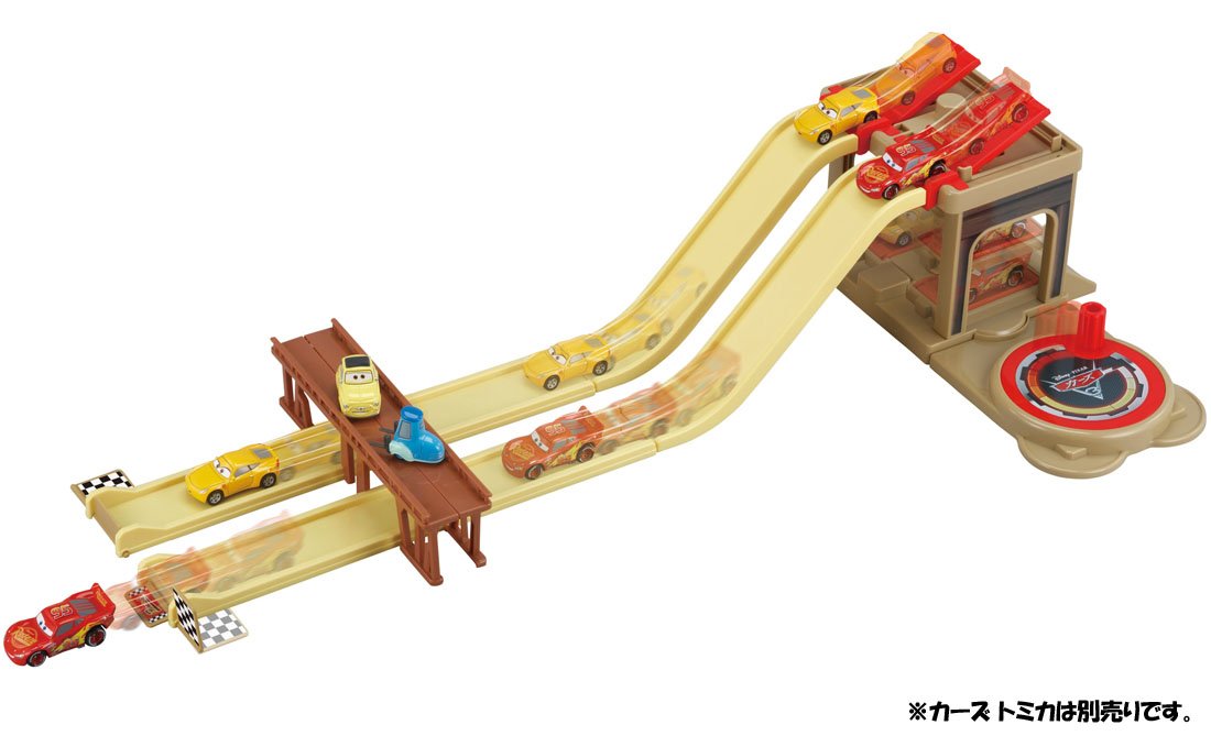 It is a course set that can reproduce the three scenes appearing in the movie 'Cars crossroad' in a reassembling manner.