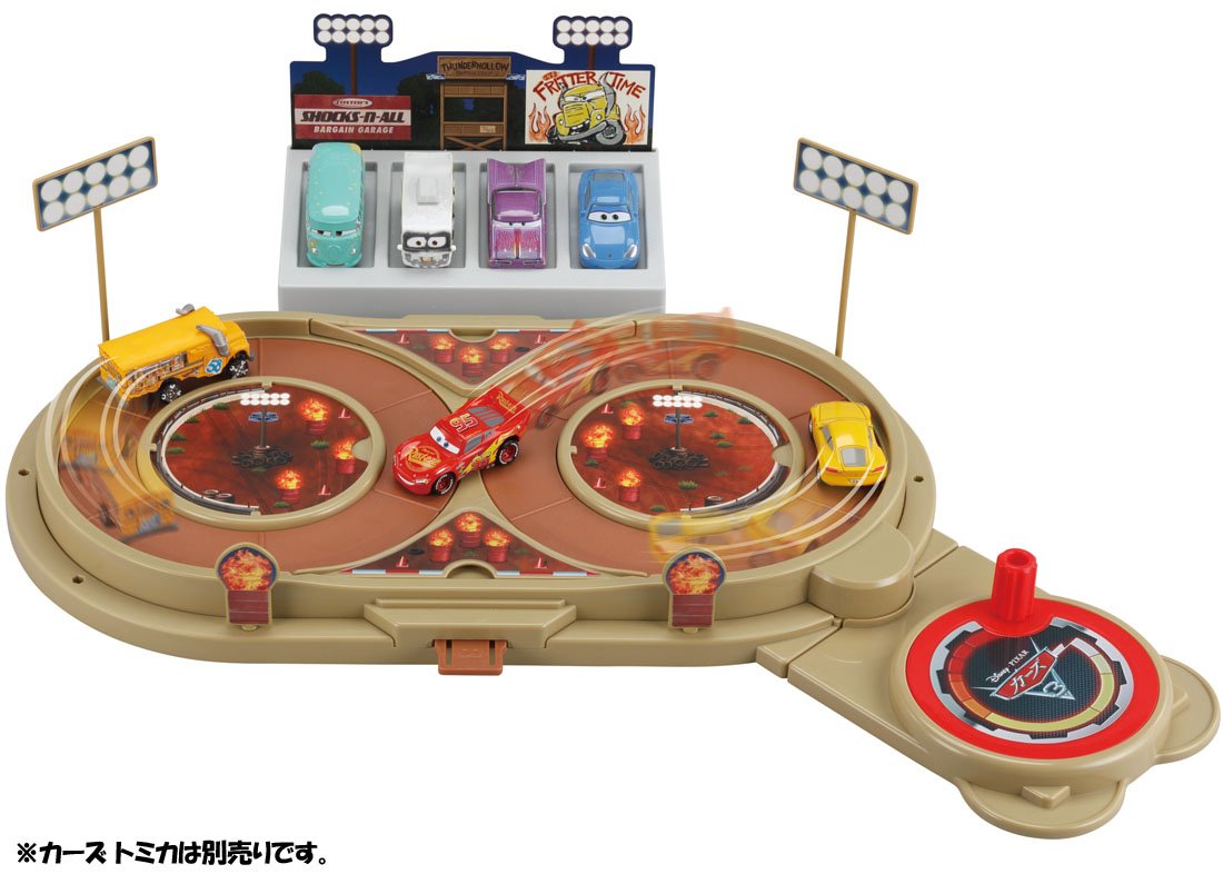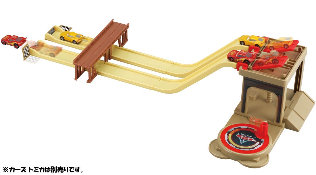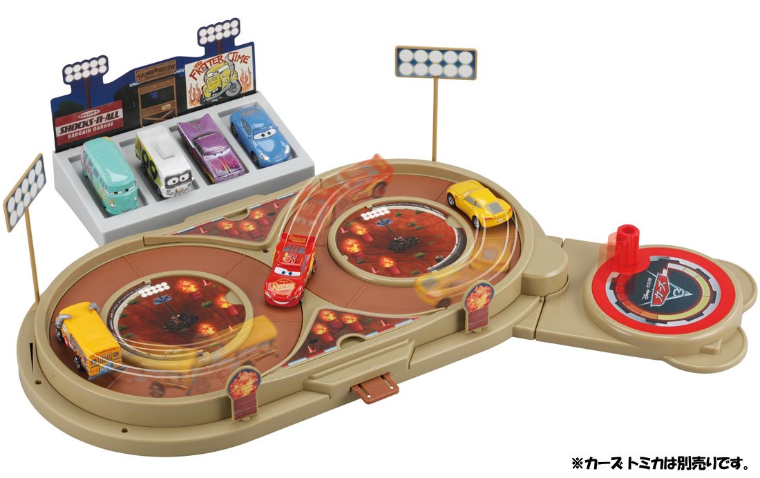 You can enjoy Cars Tomica race and battle with "Oval course", "8 character course" and "straight course".