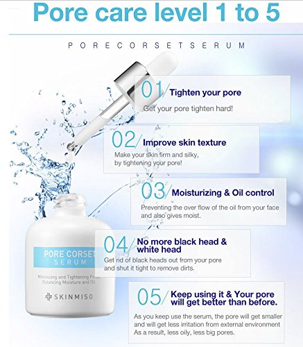 1) 20 minutes of thorough pore tightening therapy.Enlarged pores due to multiple factors break down the hydration barrier and lower the elasticity of the skin. The SKINMISO Pore Corset Serum tightens the pores immediately to restore firmness and youth to exhausted skin.
