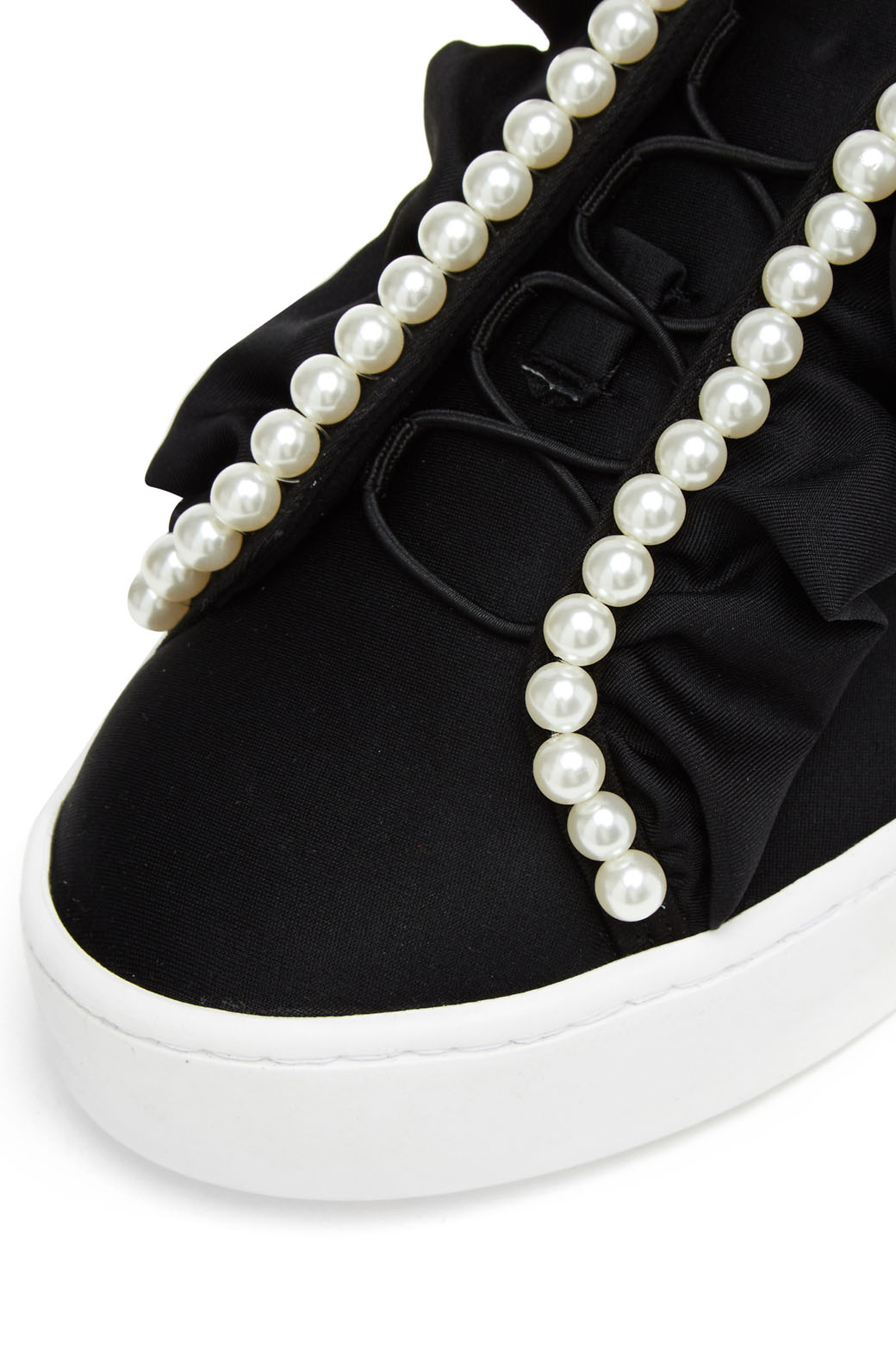- 볼륨감있는 주름 디테일과 핸드메이드 진주라인으로 포인트를 준 스니커즈.- 네오플렌 소재를 사용하여 부드럽고 편안한 착화감.- 진주 라인으로 페미닌하며 로맨틱 무드의 아이템.- 고무줄 끈을 사용하여 신고 벗기가 간편하고 용이.- 다양한 룩에 웨어러블하게 매칭이 가능하며 심플한 룩에 포인트 주기 좋은 아이템.