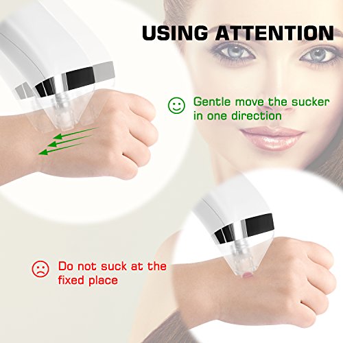 - 【 4 MULTIFUNCTIONAL INTERCHANGEABLE SUCTION CUPS FOR DIFFERENT NEEDS 】 - Particular suction cups make it more efficient and professional. Large Circular Hole is for eliminating blackheads and acne efficiently, Small Circular Hole is for clean and more careful moving, Elliptical Hole is for making the skin more elastic and compact, Micro-crystal Hole is for exfoliating keratin and dead skin, desalt scar.