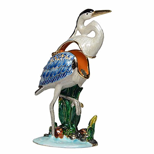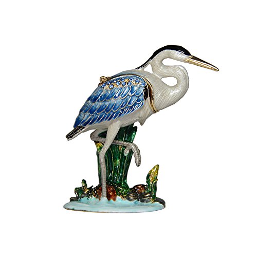 Trinket Box Metal Enameled Brid Figurine Collectable Wedding Jewelry Ring Holder Organizer (Blue Heron)