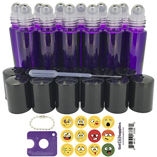 - Got Oil Supplies 10 ml Roller Bottles for Essential Oils: Our containers are available in Brown Amber, Cobalt Blue, Clear Glass, Frosted and Purple; Sold in empty refillable and reusable 6 pack and 12 packs; Buy a set of a dozen to save money!